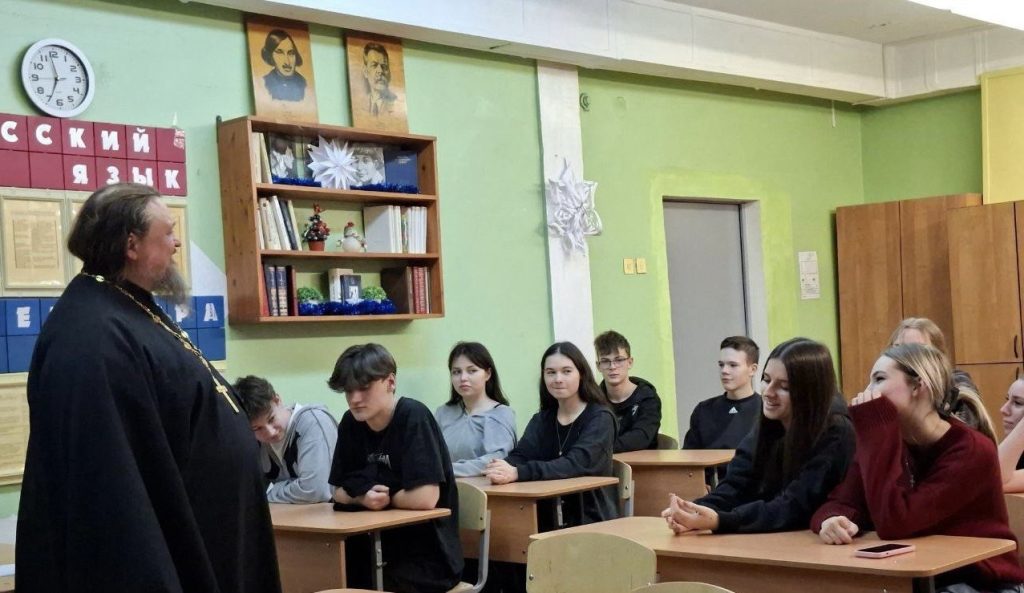 18 декабря 2025 года в рамках епархиального проекта «Диалог со священником» состоялась теплая и содержательная встреча учащихся 10 класса Новобытовской средней школы с насельником Вознесенской Давидовой пустыни игуменом Антонием (Сёмкиным). Поводом для разговора стала вечная, но не теряющая актуальности тема: «Что такое истинная красота и где ее искать?». Беседа вышла далеко за рамки простой лекции.