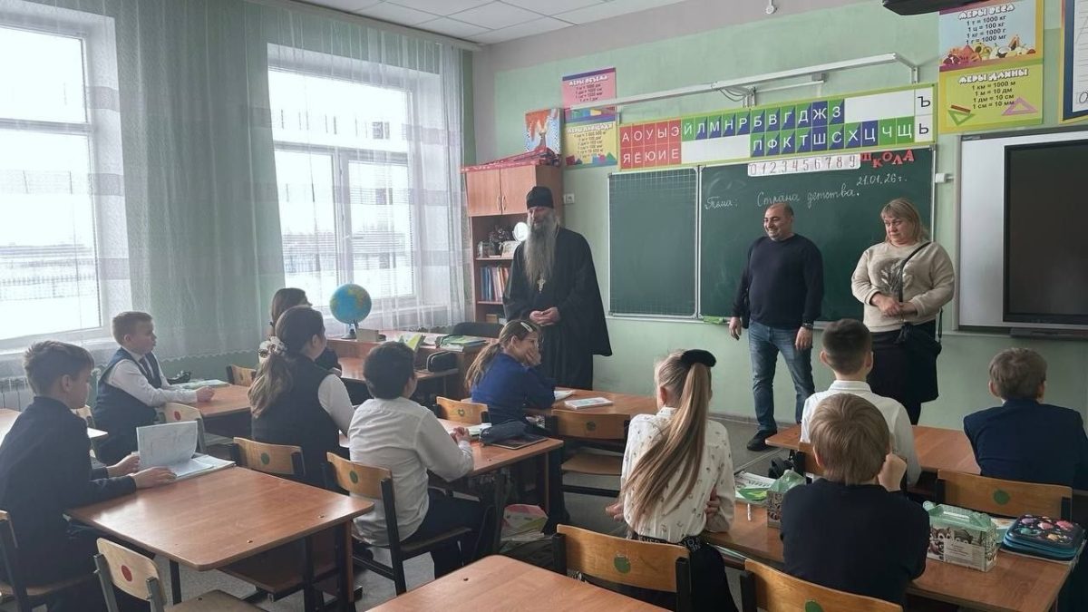 Вместе с ними школу посетили и одноклассники игумена Сергия: Людмила Черных, Валентина Епифанцева, Евгения Брагина, Виталий Айрапетов и Игорь Жарков. Гости побывали в каждом классе, где беседовали с учащимися о великих православных праздниках наступившего 2026 года и делились светлыми воспоминаниями о бывшем настоятеле храма, своем отце и дедушке.