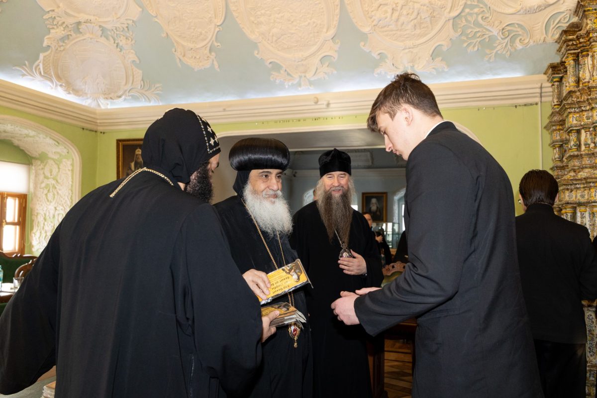 После беседы с владыкой Кириллом делегация встретилась с преподавателями и студентами академии в Елизаветинском зале. Встреча прошла в теплой атмосфере. Приветствуя собравшихся, владыка Кирилл выразил радость от возможности общения с древней Александрийской традицией и передал благословение Святейшего Патриарха Московского и всея Руси Кирилла. В ответ епископ Даниил передал сердечные молитвы и приветствия от Святейшего Патриарха Тавадроса II, пригласив всех посетить египетские монастыри.