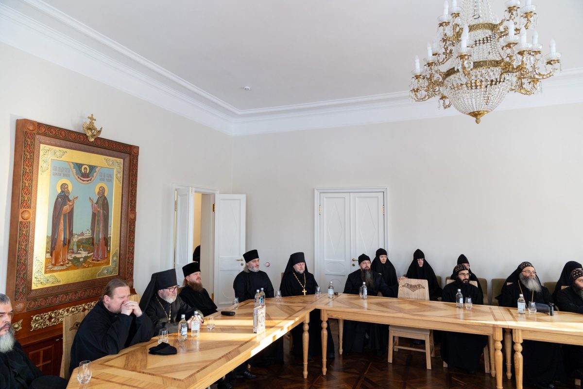 Затем состоялась встреча с братией в игуменском доме. Глава египетской делегации рассказал о монашеской жизни в коптских монастырях и ответил на вопросы братии. По завершении беседы стороны обменялись подарками. Епископ Даниил всем собравшимся вручил памятные подарки.