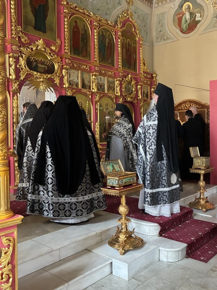 Его Высокопреподобию сослужила братия монастыря в священном сане. За богослужением, которое в дни Великого поста отличается особой строгостью и молитвенной сосредоточенностью, на сугубой ектении была вознесена молитва о Святой Руси.