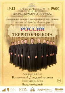 Приглашаем на концерт хора Давидовой пустыни 19 декабря в 19.00 в ДК "Дружба" г. Чехов. Вход свободный